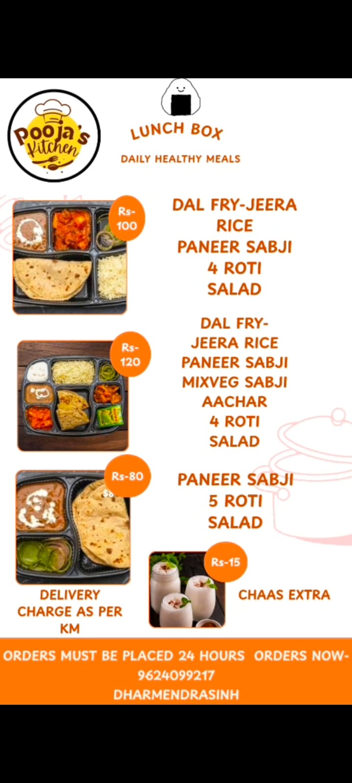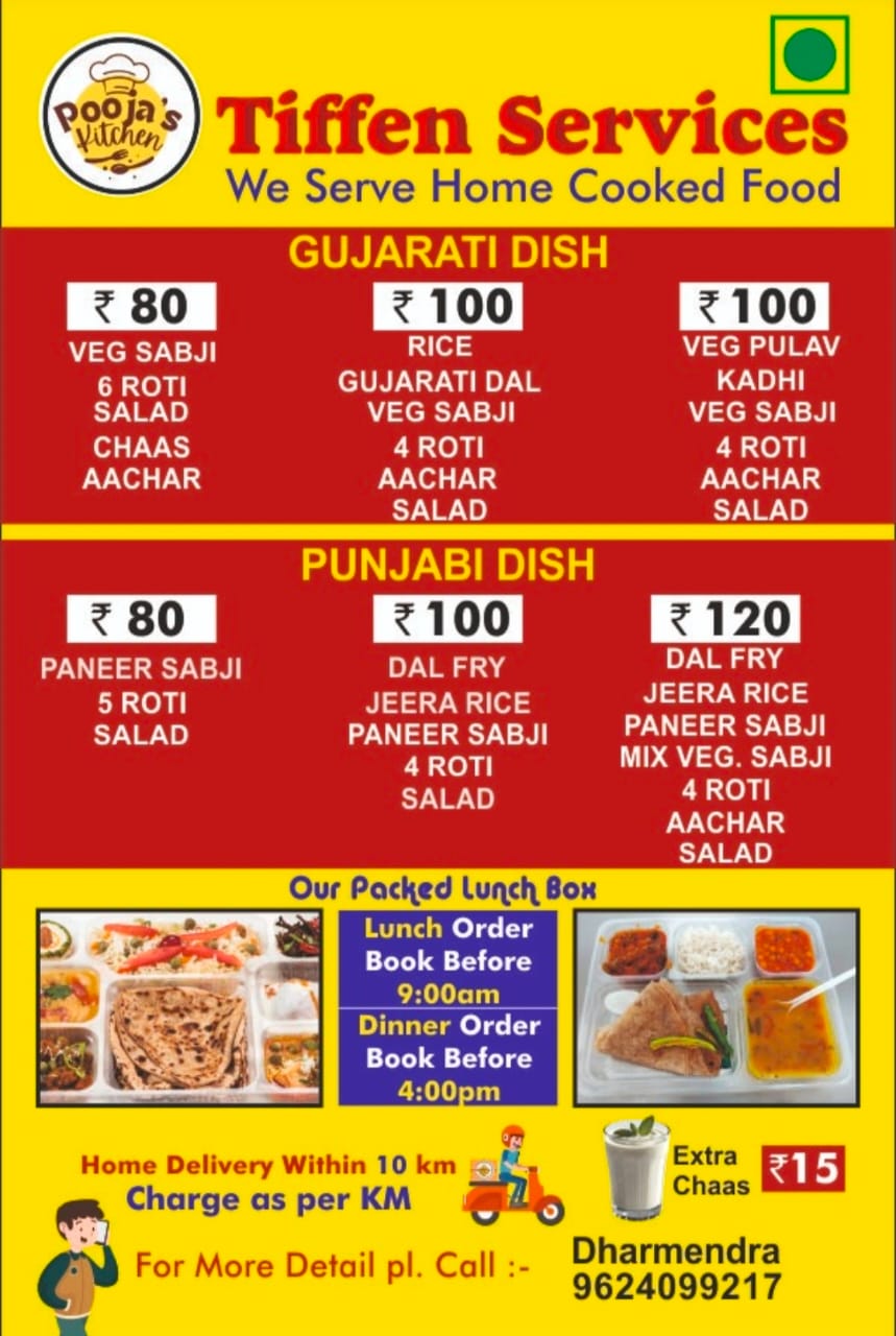 Pooja's Kitchen is a homely tiffin service in Vadodara offering fresh, hygienic and tasty homemade meals daily. We focus on quality ingredients, authentic flavors and timely delivery to give you healthy food just like home.